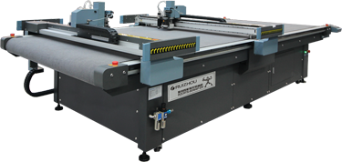 在瑞洲科技的展位現場,RZCRT5-1813智能數控切割機,其自首發(fā)之日起,全球總銷量已達數千臺,經市場多年驗證,性能穩(wěn)定、表現卓越,深受國內外用戶青睞; 集智能、高效于一體的智能數控切割機的,可實現畫線、繪圖文字標注、壓痕、半刀切割、全刀切割一次性完成,切割速度高達1500m/s,振動刀轉速高達18000轉。同時標配進口直線導軌,傳動系統采用進口直線導軌、齒條、同步帶,切割精度完全達到往返原點零誤差。